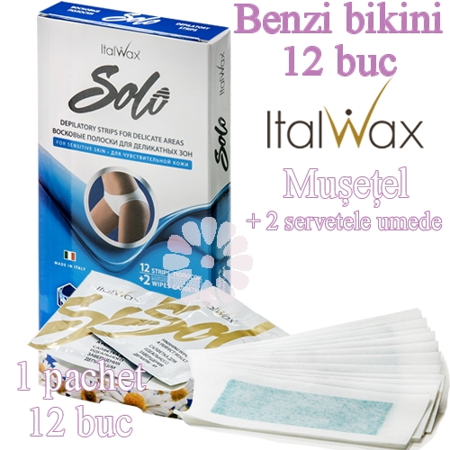 Benzi ceara Bikini 12buc + 2 servetele umede - ItalWax SOLO