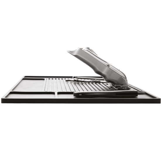 Suprafața antiderapantă previne alunecarea accidentală a instrumentelor, iar materialul rezistent la șocuri protejează atât echipamentele, cât și blatul de lucru împotriva deteriorării.