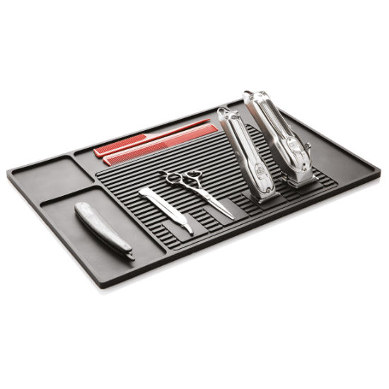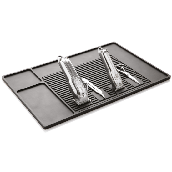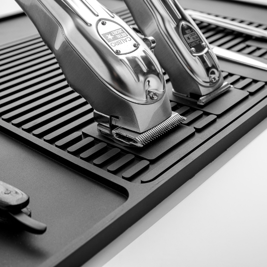 Echipat cu mai multe zone magnetice puternice, covorul permite fixarea sigură a mașinilor de tuns și a altor ustensile metalice, menținându-le în poziție stabilă și ușor accesibilă. Această funcționalitate contribuie la optimizarea spațiului și la un flux de lucru mai rapid.