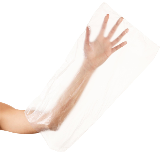 Mănușile din polietilenă pentru mâini 48x24 cm set 100buc sunt accesorii de unică folosință, recomandate pentru tratamente cosmetice, împachetări cu parafină, măști hidratante și proceduri de îngrijire a mâinilor.