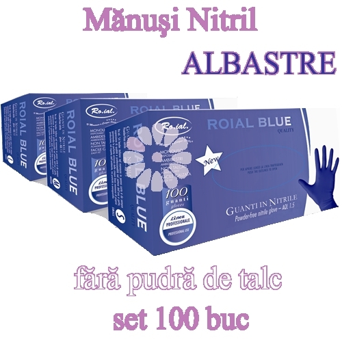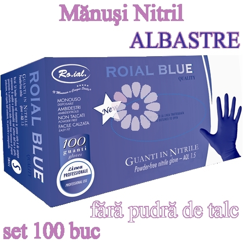 Manusi din Nitril ALBASTRE "Roial Blue Quality" - FARA pudra de talc - 100buc - AQL 1.5