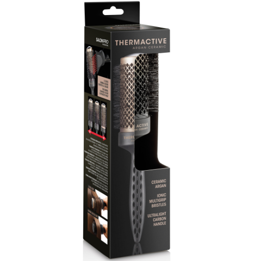 Peria Thermactive Argan Ceramic 53 mm combină beneficiile ceramicii cu proprietățile hrănitoare ale uleiului de argan, oferind un instrument profesional complet pentru coafat în saloane și frizerii. Cilindrul ceramic distribuie căldura uniform, reducând frizz-ul și electricitatea statică, în timp ce uleiul de argan lasă părul neted, strălucitor și ușor de pieptănat.