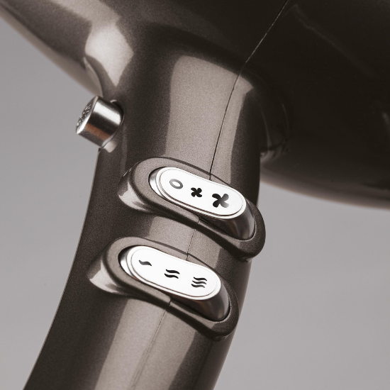Modelul este echipat cu un motor profesional AC LIGHT de 2200W, care oferă un flux puternic de aer și o durată lungă de viață. Puterea ridicată contribuie la uscarea rapidă și eficientă a părului, indiferent de grosime sau lungime. Grila acoperită cu turmalină și ceramică ajută la reducerea electrizării și la protejarea firului de păr în timpul uscării.