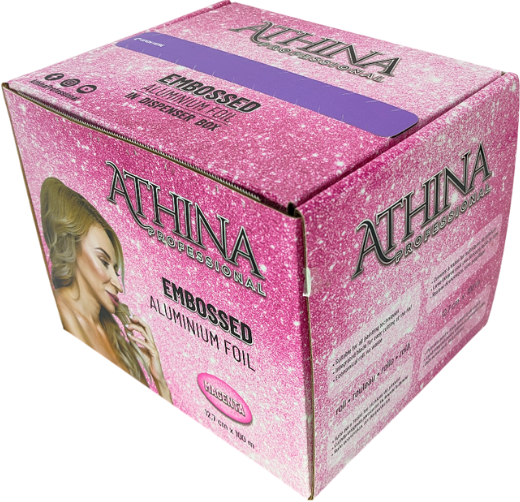 Folie aluminiu embosata ATHINA cu design MAGENTA, ideala pentru vopsire si suvite in saloane profesionale. Ofera aderenta buna si stabilitate sporita in timpul colorarii. Rola 12 cm x 100 m, cu cutter integrat.
