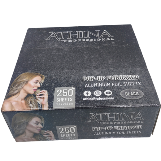 Folie aluminiu POP-UP embosata 12.7 x 27.9 cm NEAGRA – ATHINA este conceputa pentru saloanele de coafura care doresc precizie si rezultate constante in procesul de vopsire. Formatul POP-UP pre-taiat permite utilizarea imediata a fiecarei folii, contribuind la un proces de aplicare fluent si controlat.