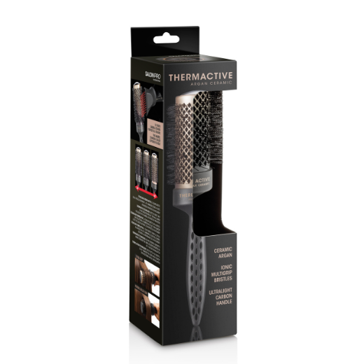 Peria Thermactive Argan Ceramic 53 mm combină beneficiile ceramicii cu proprietățile hrănitoare ale uleiului de argan, oferind un instrument profesional complet pentru coafat în saloane și frizerii. Cilindrul ceramic distribuie căldura uniform, reducând frizz-ul și electricitatea statică, în timp ce uleiul de argan lasă părul neted, strălucitor și ușor de pieptănat.